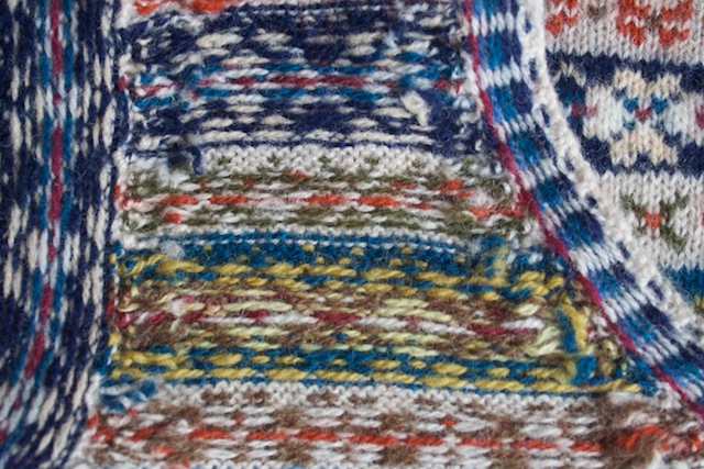 I’m thinking that way back there was not much time to knit, and even less time to finish – so knots were the easiest way of “finishing” and these examples show they they stand the test of time. So many knitters look at stranded (fair isle) knitting and bemoan all of the ends….well, here’s a simple solution!
