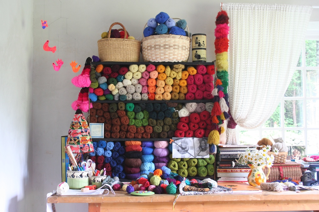 When I’m missing in action here on the blog, usually that is exactly what is happening…I’m in action…somewhere…and I can’t talk about what I’m doing for months! One of the hats I wear is as stylist for various magazines, individuals and in this case, a yarn company, Berroco. It really is a dream come true to work with one of the most talented knitwear designers alive, Norah Gaughan, creative director at Berroco, who I have admired since I first picked up a knitting magazine! Styling is a lot of work – challenging and fun all at the same time! We shoot up to 80 items over the course of 4 days. In March we shot the five Berroco booklets for Fall 2012, which are out now! I love working with groups of people, everyone bringing their own expertise to the project. The Berroco team is amazing and photographer Chris Vaccaro and his crew always get the shot. While things seem calm and serene in the images, this is what you get just out of shot.