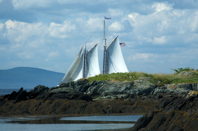 Did I trick you with the image? Not Maine, but Stuart Island Washington, looking over to the Canadian islands of South Pender and Saturna. I’m in the Northwest this week for my mom’s birthday. Can you believe there is a schooner? Never have we see one off the point before! Crazy.