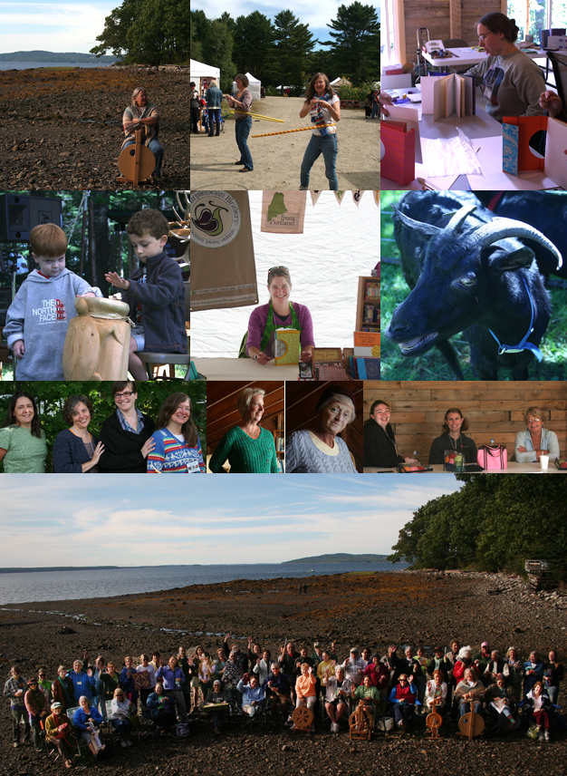 I always look forward to Fiber College which is held in my neck of the woods. It heralds the beginning of fall for me, the temptation of Sweater Weather just around the corner. What makes this event different than a lot of other fiber events its intimacy and diversity. Fiber College is not just for knitters, though they are well represented, no, fiber college means Quilting, Book Making, Rug Hooking, Spinning, Dyeing, Needle Felting, Chair Caning, Wood Carving, Weaving and more! more! more! This year there were 57 classes…something for everyone including spouses, and on Sunday, even children. This year’s Artist in Residence Alice Seeger, was available the entire time, offering free wisdom and inspiration as well as teaching great classes. There are fantastic demonstrations and talks all day long, Japanese Embroidery, Embellishing Your Handwork, Tending a Spinners Flock– just take a look at what else was offered this year. Fiber College is always the weekend after Labor Day from Thursday through Sunday.