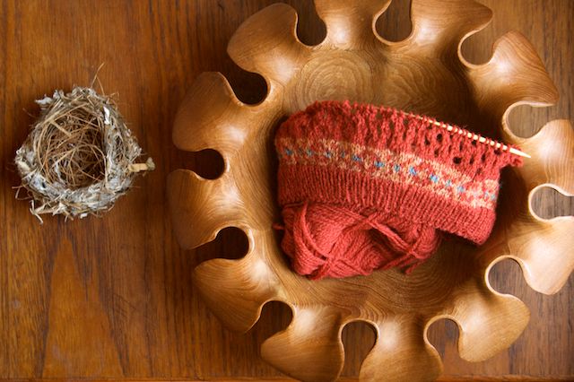 If I’d studied my work I would have noticed that I was making lovely little paired decreases, but I was too busy watching this little person